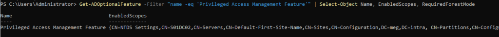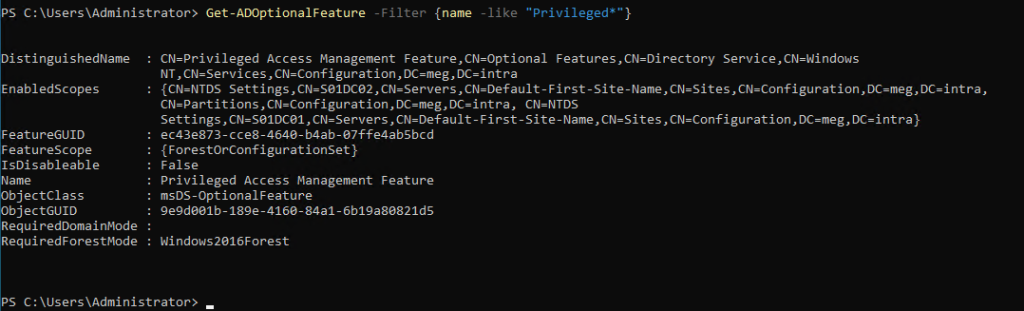 Get-ADOptionalFeature -Filter {name -like “Privileged*”}