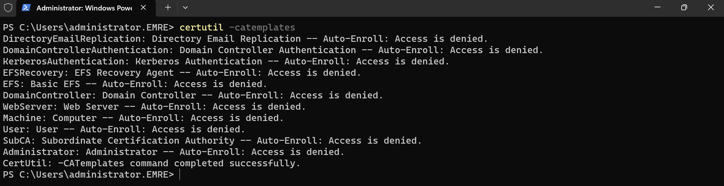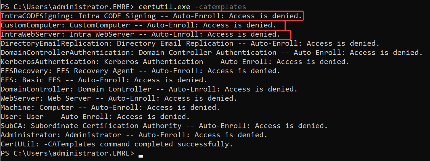 certutil -catemplates