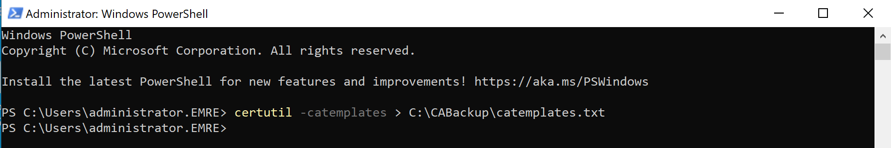 certutil -catemplates > C:\CABackup\catemplates.txt