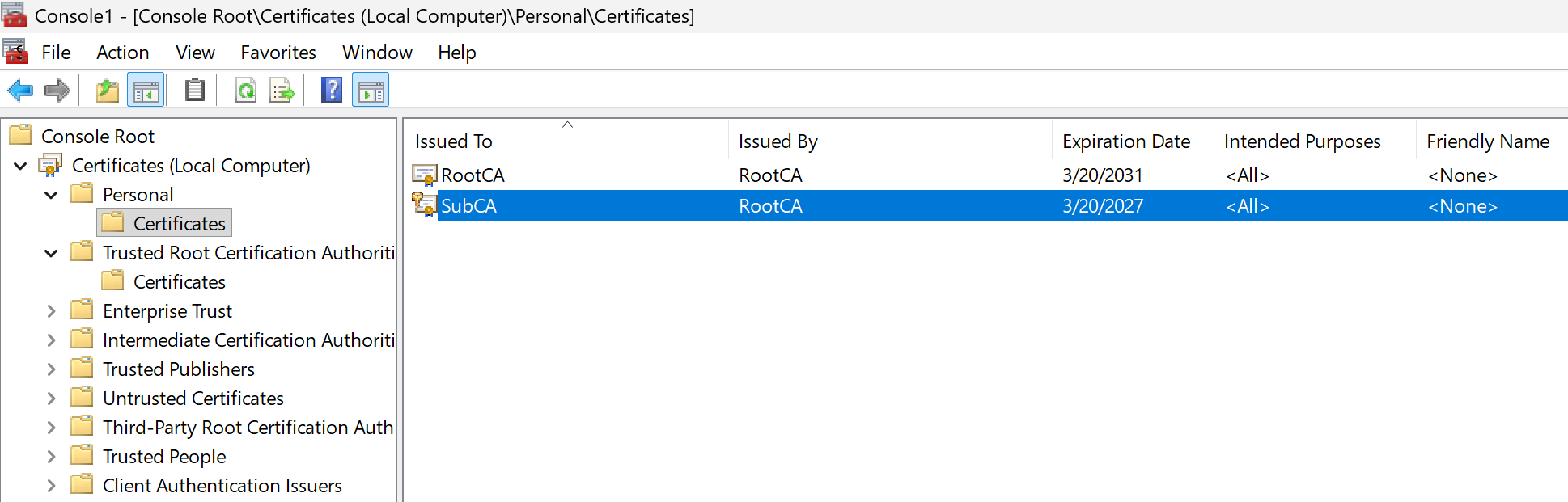 Trusted Root Authorities store’una yüklemeyi unutmayın. AD CS Rolü Kurulumu — PowerShell