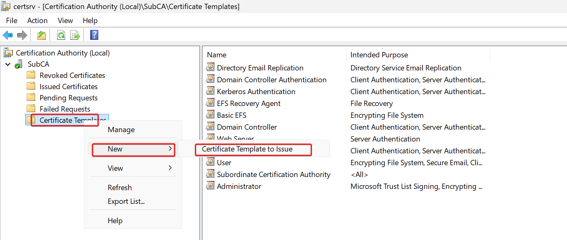 # → New → Certificate Template to Issue