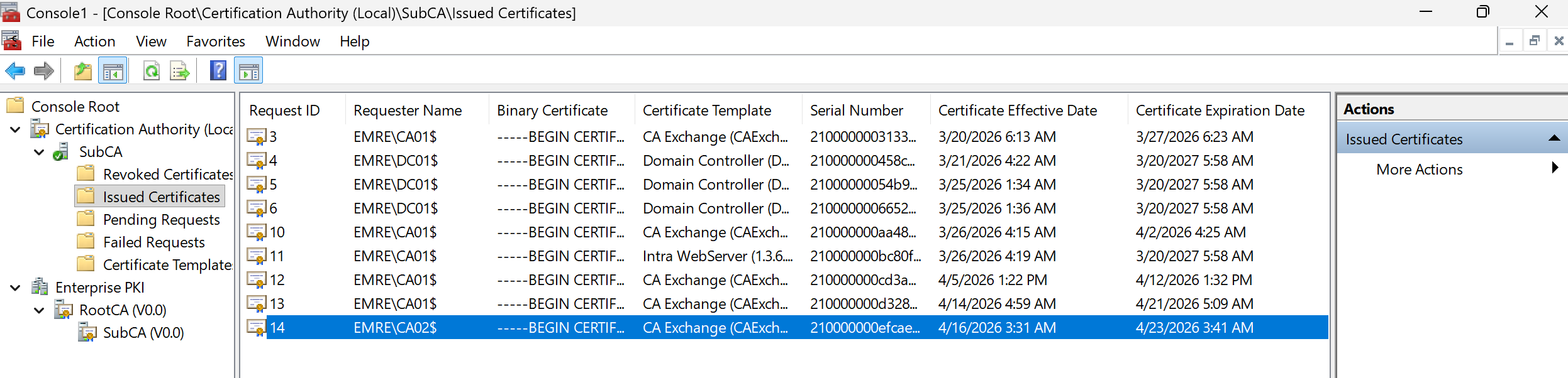 Sertifikalarımızda ve Enterprise PKI konsulumuzda sonn bir kontrol yapalım.