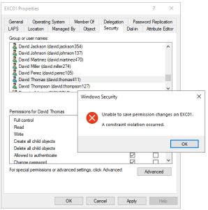 Çözümü? Çözümü basit, ACL listesini azaltmak/temizlemek. Bunun için ilgili nesnenin security tabından istemediğiniz girdileri temizleyerek bu durumu çözebilirsiniz. İnternette ufak bir arama ile ilgili objeden ilgili kullanıcı yetkilerini kaldıran bir çok script bulabileceğiniz için onu burada paylaşmıyorum.